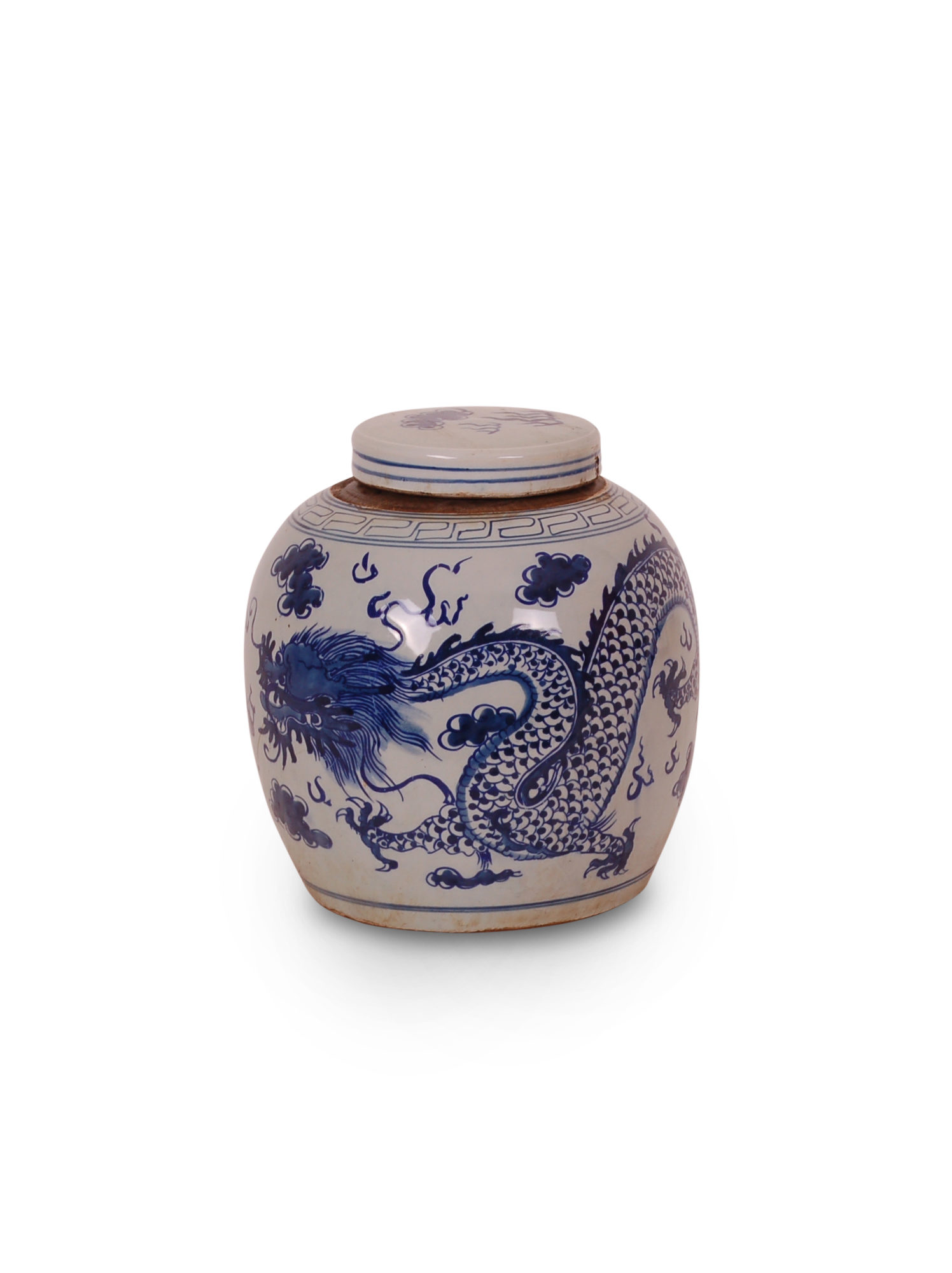 10″ Blue and White Dragon Jar