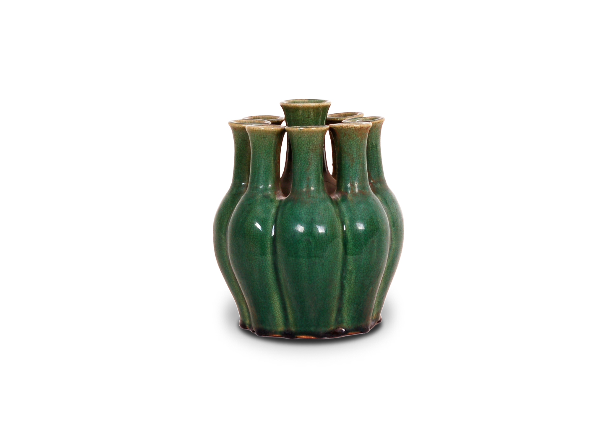 Reproduction porcelain tulipiere finished with a washed green glaze.